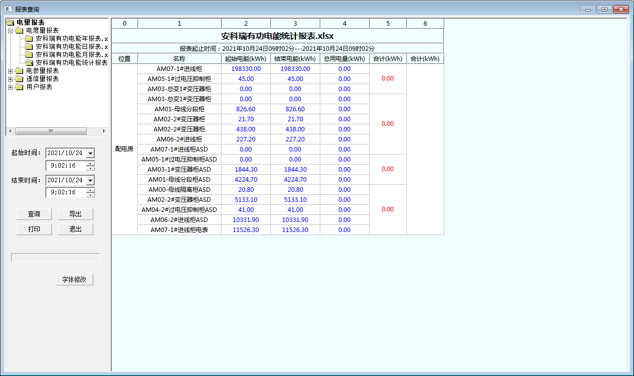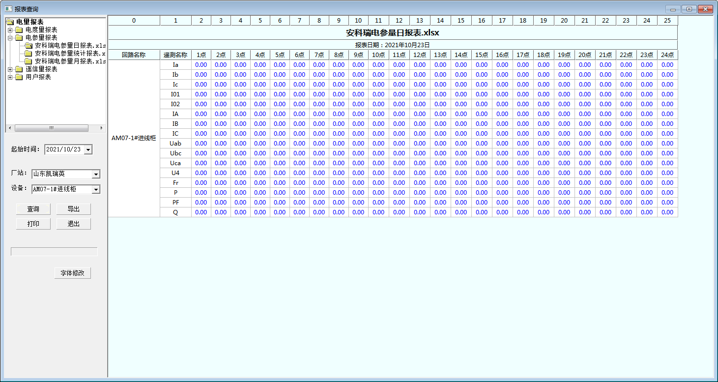 3)運(yùn)行報(bào)表: 查詢各回路或設(shè)備指定時(shí)間的運(yùn)行參數(shù),報(bào)表中顯示電參量信息應(yīng)包括:各相電流、三相電壓、總功率因數(shù)、總有功功率、總無功功率、正向有功電能等,報(bào)表格式有日報(bào)表、月報(bào)表、年報(bào)表等。