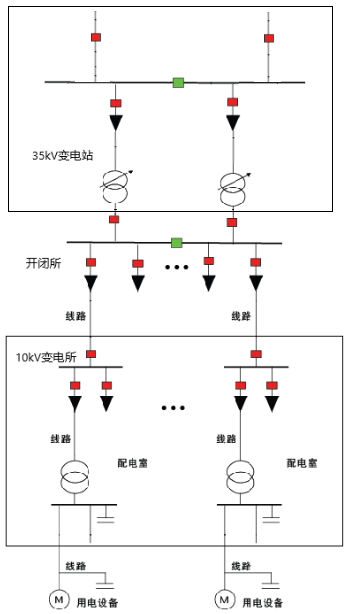 本項(xiàng)目35kV變電站為終端用戶變,35kV采用單母線分段接線,為保障35kV變電站和各分變電所一次設(shè)備穩(wěn)定安全運(yùn)行:需在35kV側(cè)和10kV側(cè)各高壓開關(guān)柜配置微機(jī)保護(hù)裝置,智能操控?zé)o線測溫一體化裝置,以及變電站綜合自動(dòng)化系統(tǒng)Acrel-1000一套,實(shí)現(xiàn)對高壓柜的設(shè)備運(yùn)行情況實(shí)時(shí)監(jiān)視和保護(hù)。