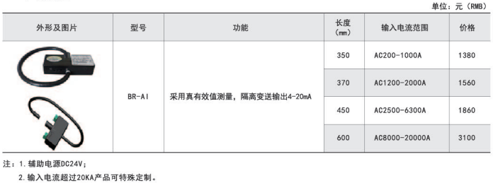 BR系列產(chǎn)品應(yīng)用電磁感應(yīng)原理,對(duì)電網(wǎng)中的交流大電流進(jìn)行實(shí)時(shí)測(cè)量,采用真有效值和線性補(bǔ)償技術(shù),將其隔離變換為標(biāo)準(zhǔn)的直流信號(hào)輸出。