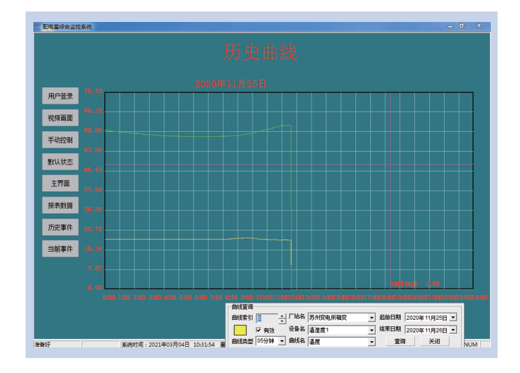 在曲線查詢界面,可以直接查看遙測(cè)參量曲線,包括溫度、濕度、水位、有害氣體濃度、電壓、電流等曲線。