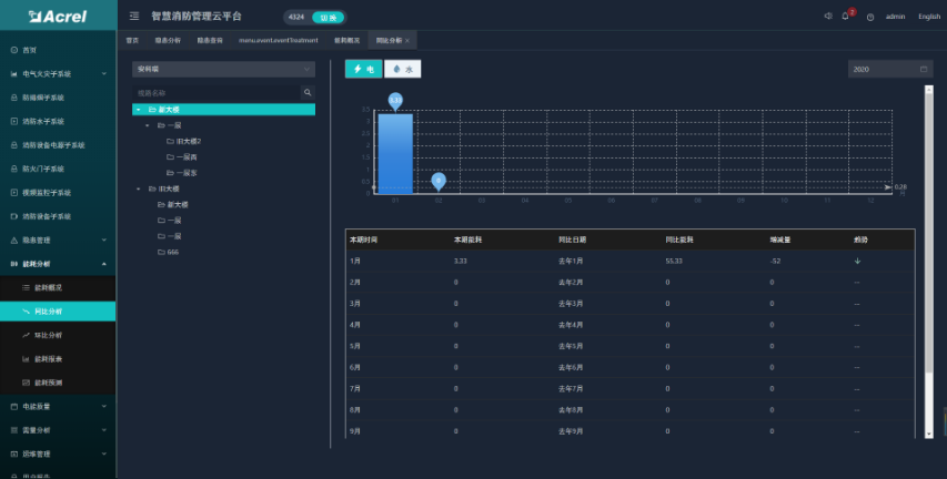 能耗分析功能包括了能耗概況、能耗同比、能耗環(huán)比、能耗報(bào)表和能耗預(yù)測等五個(gè)模塊。可以查看登錄用戶下的所有項(xiàng)目 的能耗統(tǒng)計(jì)、同環(huán)比和報(bào)表,且按日、周、月等維度進(jìn)行能耗預(yù)測分析。