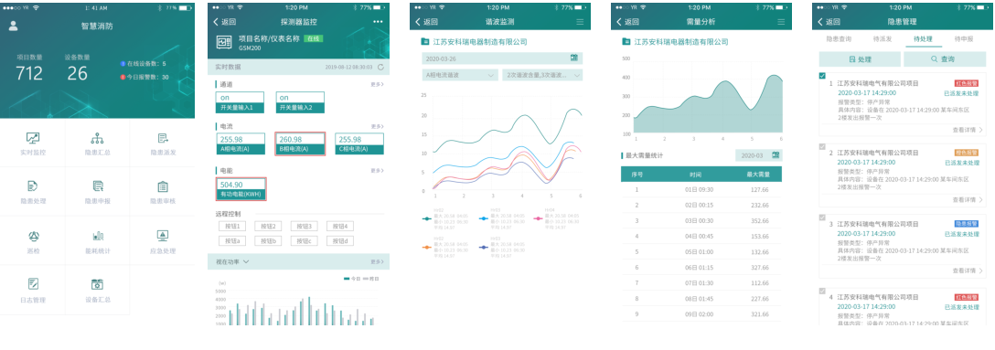 APP支持Android、iOS操作系統(tǒng),方便用戶查看電氣火災(zāi)、防排煙、消防水、消防設(shè)備電源、防火門、消防設(shè)備管理、視頻 監(jiān)控、火災(zāi)報(bào)警等子系統(tǒng)的實(shí)時(shí)監(jiān)控?cái)?shù)據(jù)、報(bào)警信息、能耗統(tǒng)計(jì)等。